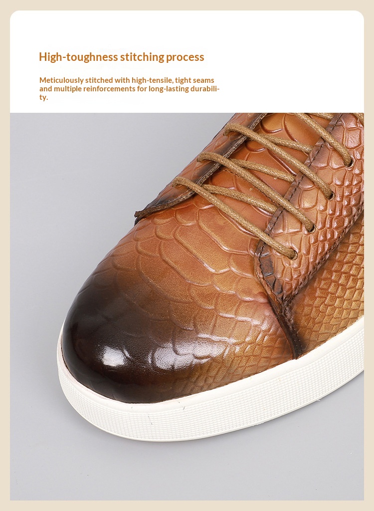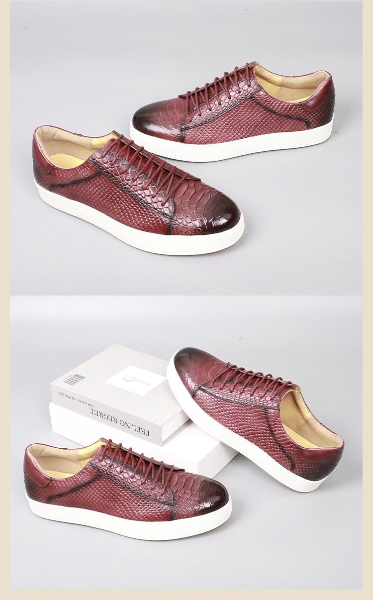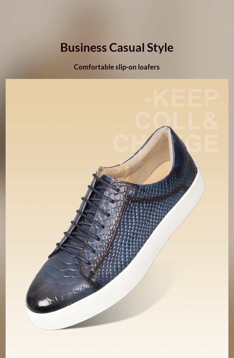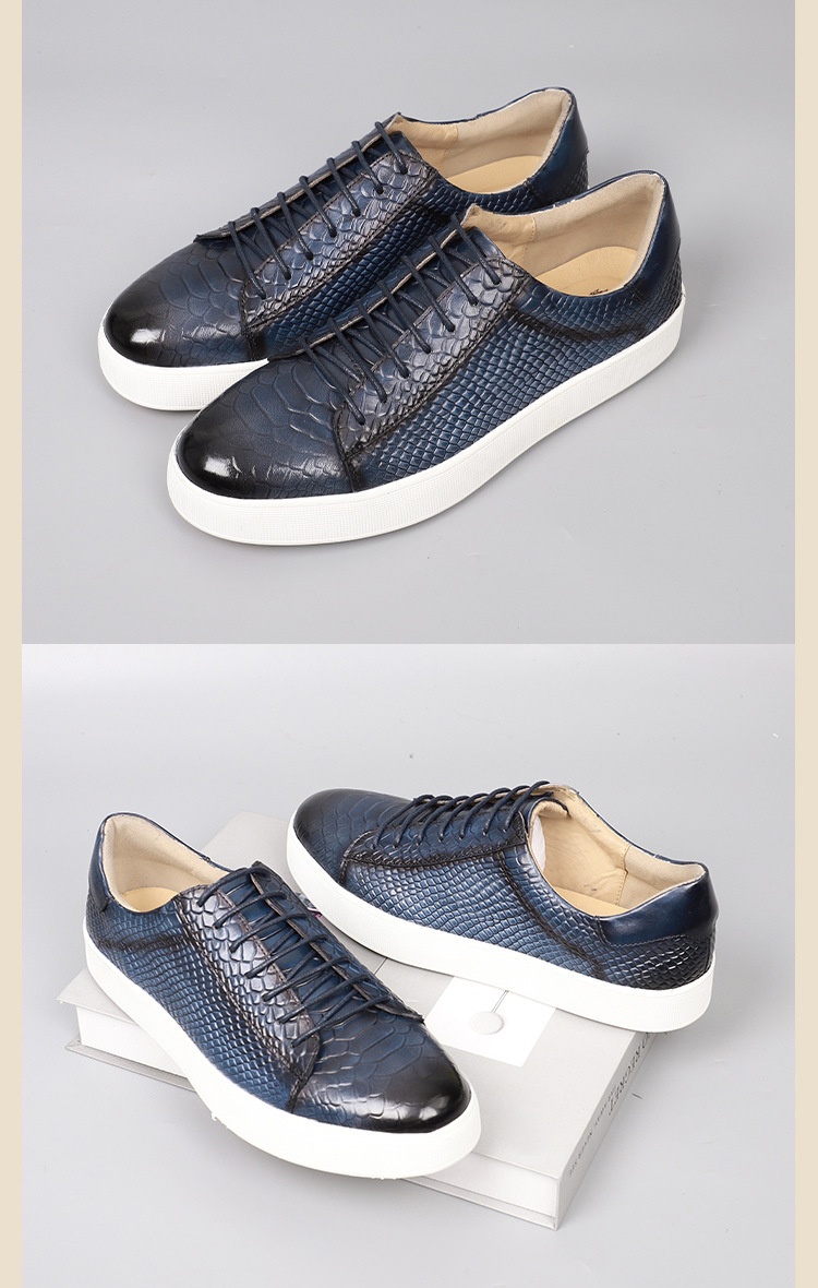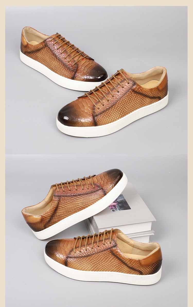 Lace-up Embossed Flat Casual Leather Shoes For Men