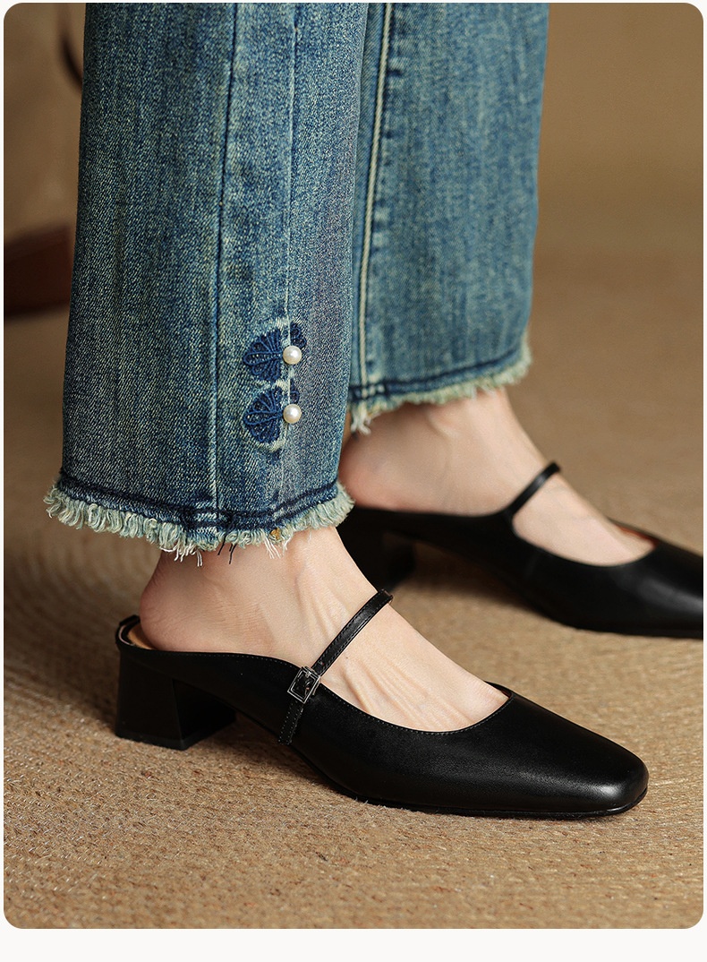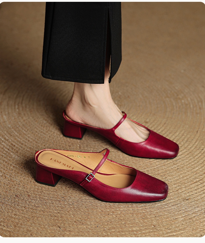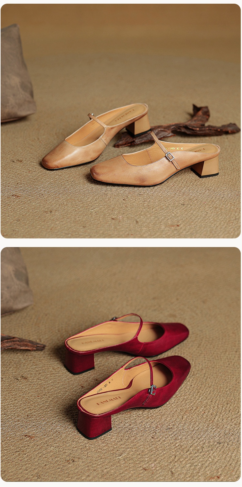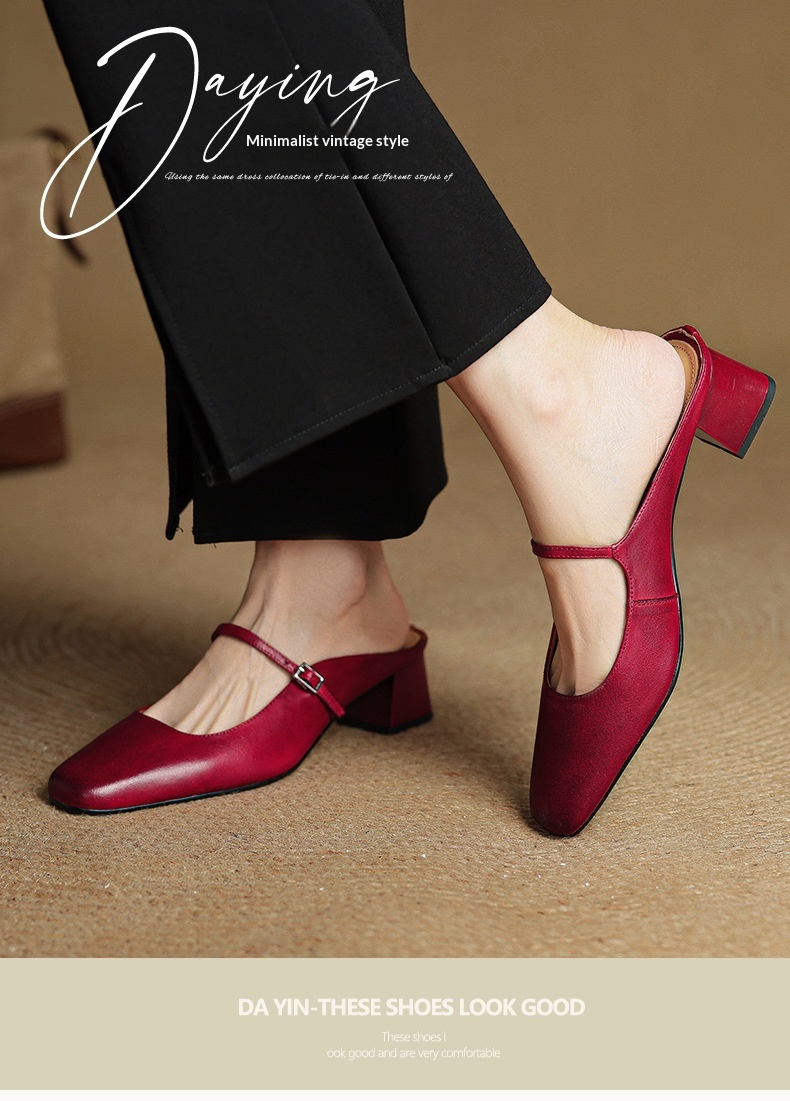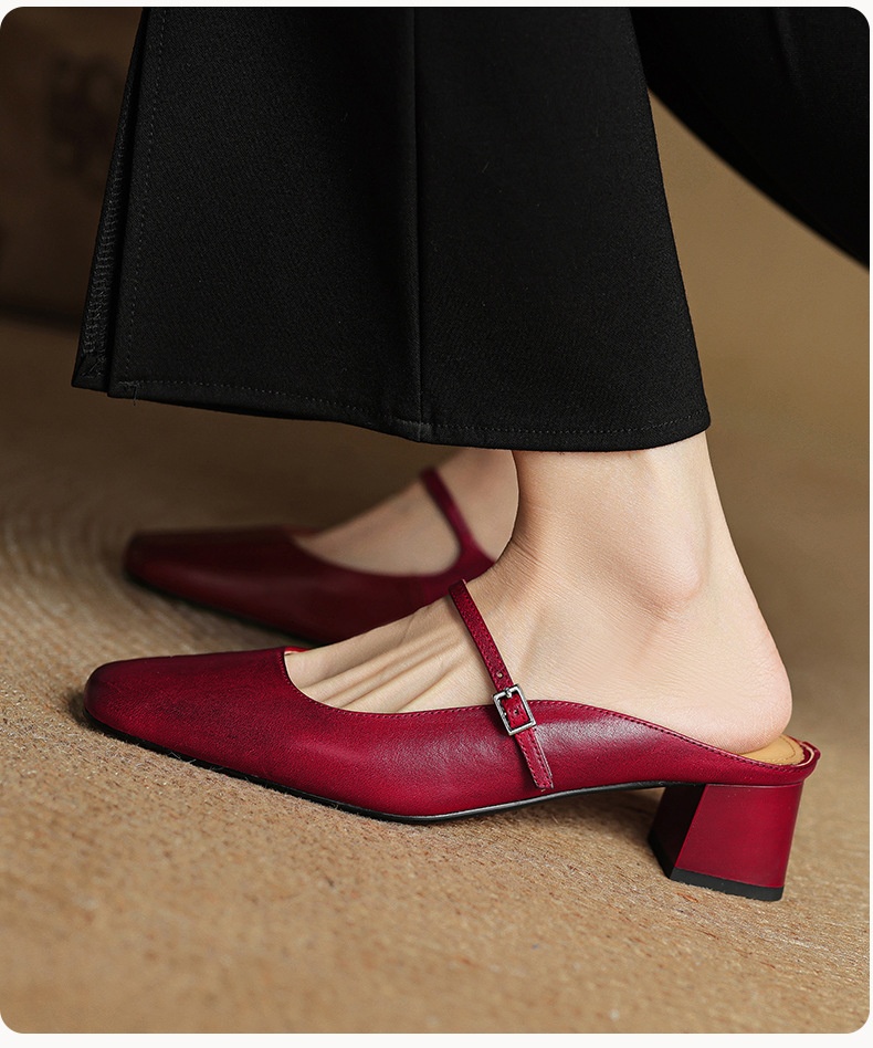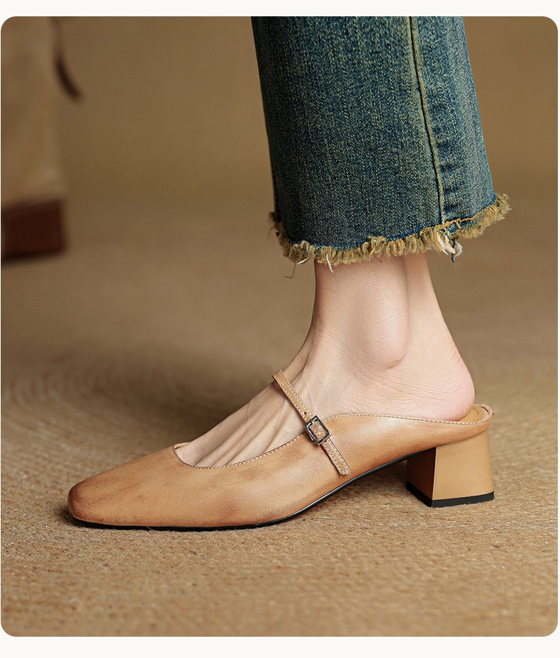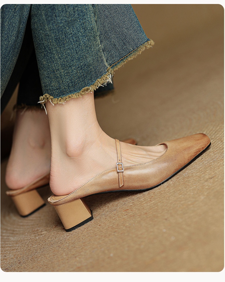 Retro Chunky Heel Peep-toe Slingback French Single-strap Slip-on Mid-heel Sandals