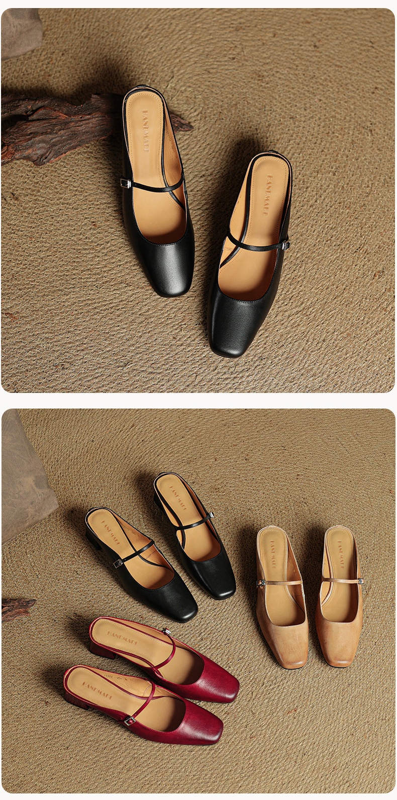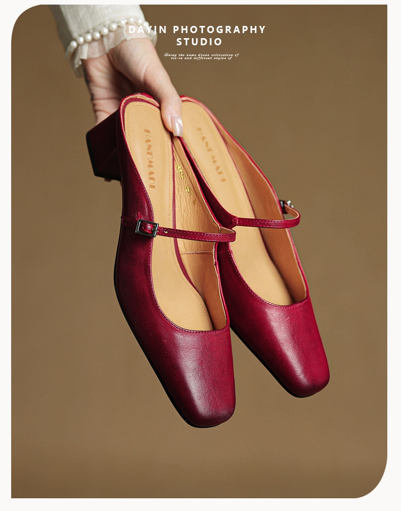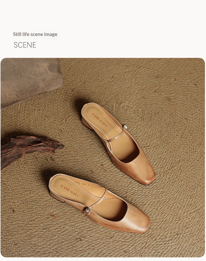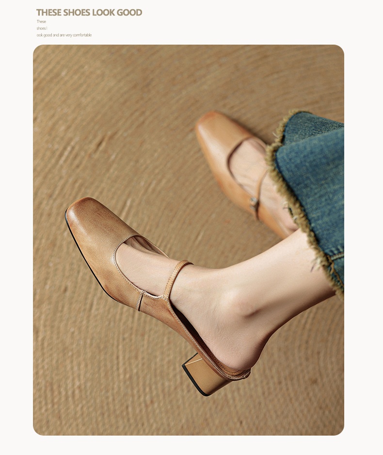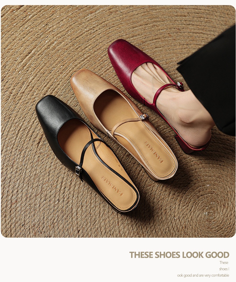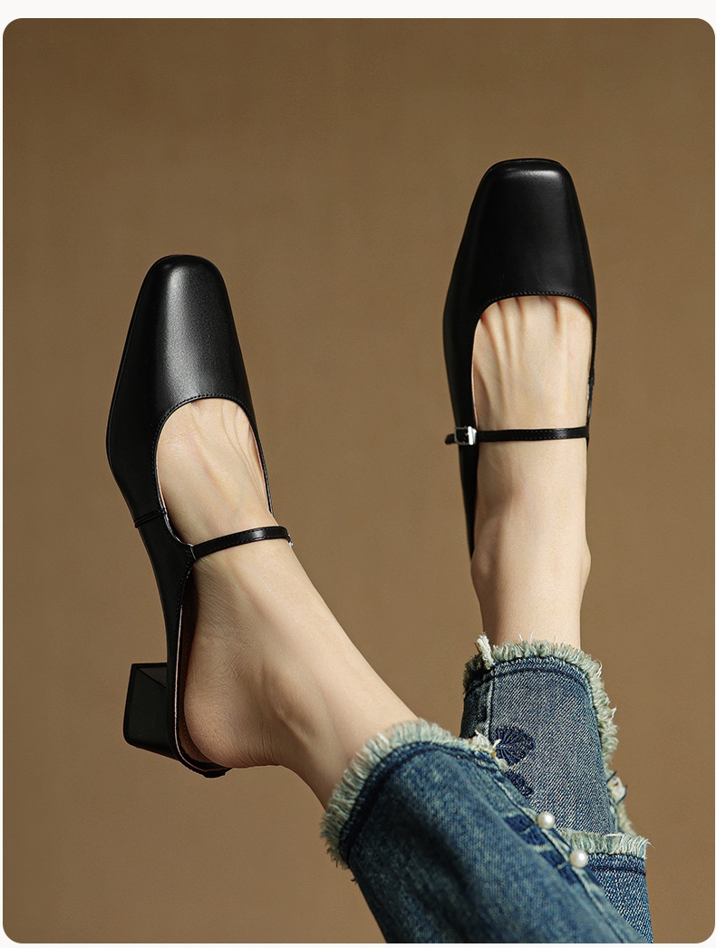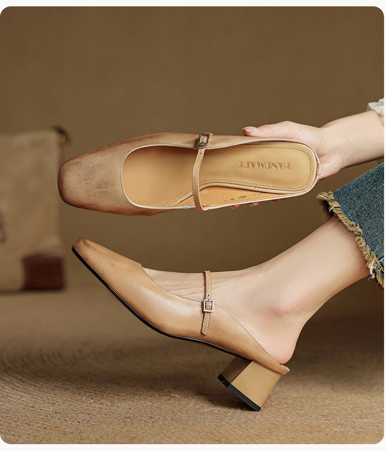 Retro Chunky Heel Peep-toe Slingback French Single-strap Slip-on Mid-heel Sandals